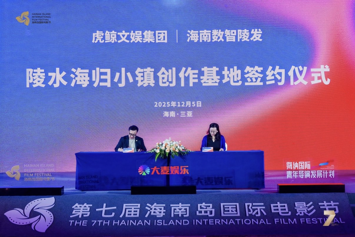 活动现场,在国家电影局、海南省电影局的支持下,虎鲸文娱集团与海南数智陵发产业发展有限公司正式签署合作协议。依托海归小镇专项基金、完善的产业配套设施与极具竞争力的人才政策,“海纳计划”“春苗计划”将联手在陵水海归小镇落地,建立海纳春苗创作基地。